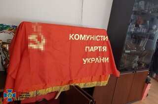 В ходе обысков по месту жительства задержанного обнаружены мобильные телефоны, которые он использовал для общения с российской спецслужбой. Также у него изъято большое количество запретной коммунистической символики.
