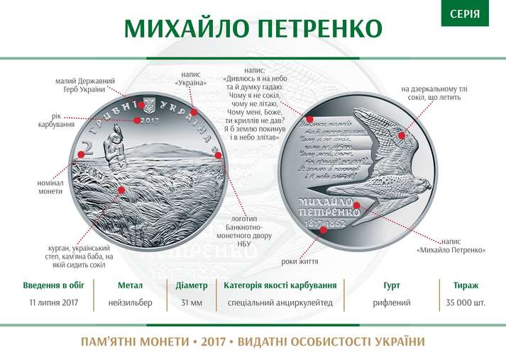 Монета, посвященная Петренко, имеет номинал 2 грн и продолжает серию «Выдающиеся личности Украины». Цена монеты 35 грн.