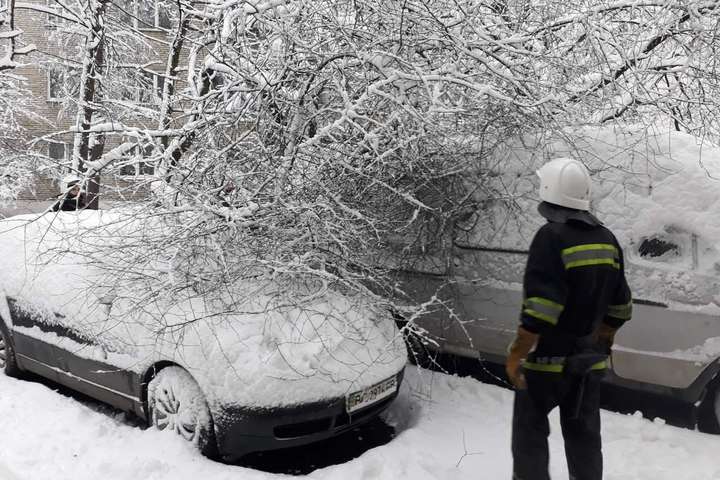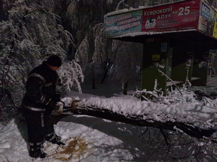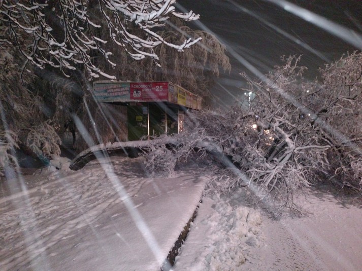 На Львовщине снегопад парализовал движение на трассе Киев-Чоп. В самом Львове снегопад повалил с десяток деревьев.