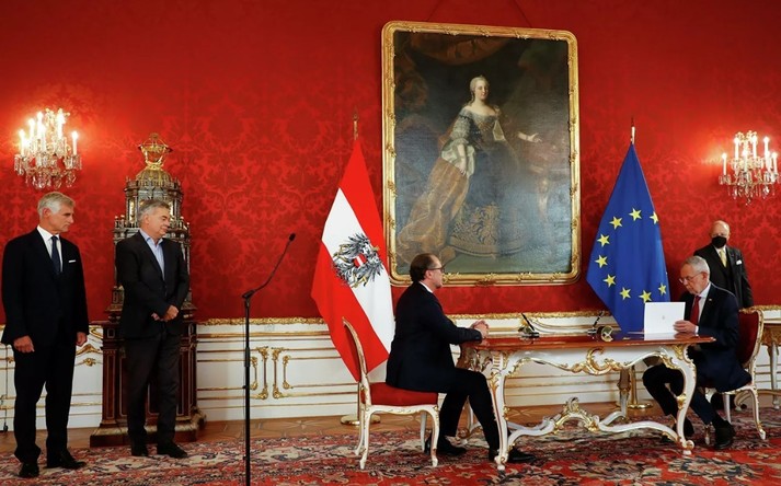 Федеральный президент Австрии Александер ван дер Беллен привел к присяге нового канцлера Александера Шалленберг и нового главу МИД Михаэля Линха Линхарта. Церемония состоялась 11 октября во президентской канцелярии во дворце Хофбург в Вене.