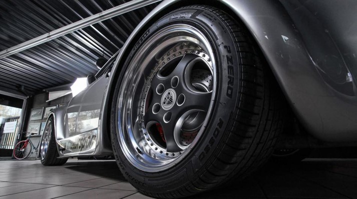 К сожалению, двигателя IMSA от 962 тут нет. Хотя окружающие скорее этому обрадуются, ибо стекла в их домах останутся целыми. В реплике имеется 3,3-литровый шестицилиндровый "боксер" с турбонаддувом от гражданской версии, из которого вытянули 450 л.с. (на 130 л.с. больше) и выхлопная система из нержавеющей стали. Естественно, модернизировали и подвеску и поставили новые 18-дюймовые трехсоставные диски.