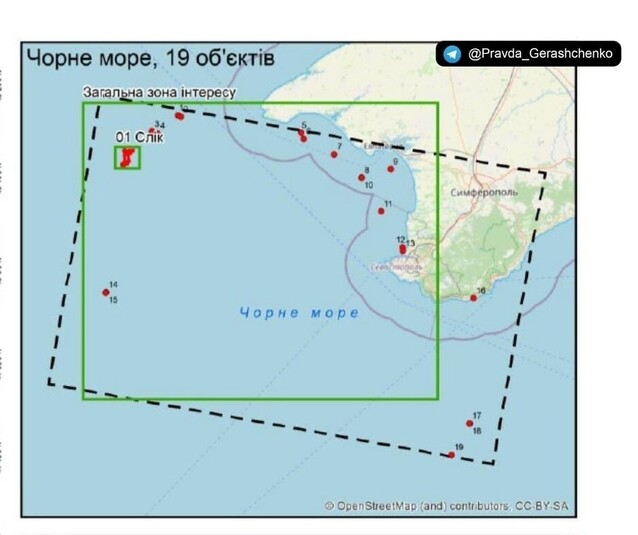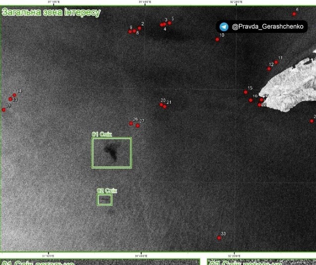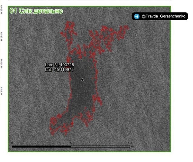 «На снимке, сделанном радарным спутником одной из стран НАТО, вы видите реальное место, где покоится объект культурного наследия Украины, свидетельство побед наших инженеров и военных – крейсер «Москва», – написал Геращенко.