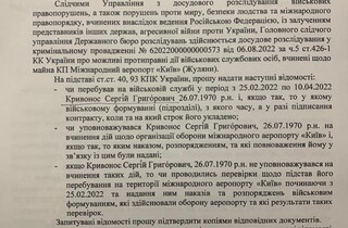 «Против меня 2 августа возбуждено уголовное дело ГБР. Следователи ГБР получили указание признать незаконным приказ подписанный лично главнокомандующим ВСУ Валерием Залужным о назначении меня командиром обороны аэропорта «Жуляны» и о зачислении меня на военную службу. Поэтому возбуждено заказное дело, что я якобы выдавал незаконные приказы при организации обороны аэропорта «Жуляны» в феврале-марте», – отмечает Кривонос.