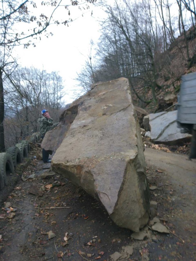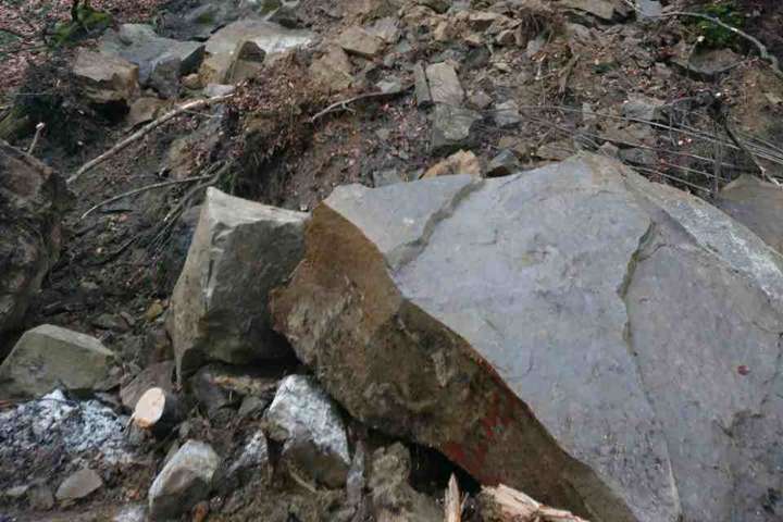 Огромные каменные глыбы рухнули на дорогу на Закарпатье (фото, видео)