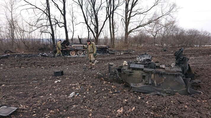 Украинские военные с помощью NLAW разбили российский танк Т-80 под Тростянцем