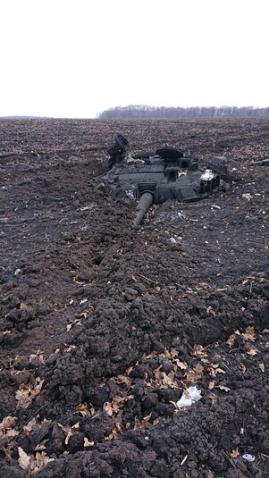 ВСУ с помощью NLAW разбили российский танк Т-80 под Тростянцем. Ранее на том же месте разбили БМП, танки и автомобили оккупантов.