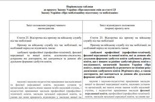 Законопроектом предлагается, чтобы во время мобилизации не призывали: соискателей профессионального (профессионально-технического), профессионального высшего и высшего образования, которые по дневной или дуальной формам получения образования получают уровень образования, который выше ранее полученного уровня образования в последовательности, определенной законом Украины Об образовании», если обучение было начато не позднее года достижения претендентом на образование 30-летнего возраста, а также докторантов, обучающихся по дневной или дуальной форме получения образования.