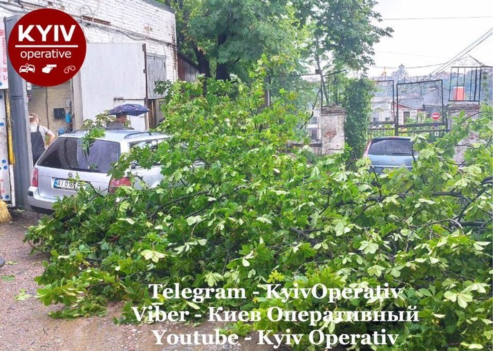 В понедельник, 15 июня, из-за сильного ливня в Киеве упали несколько деревьев. Об этом сообщается на странице «Киев оперативный» в Facebook.