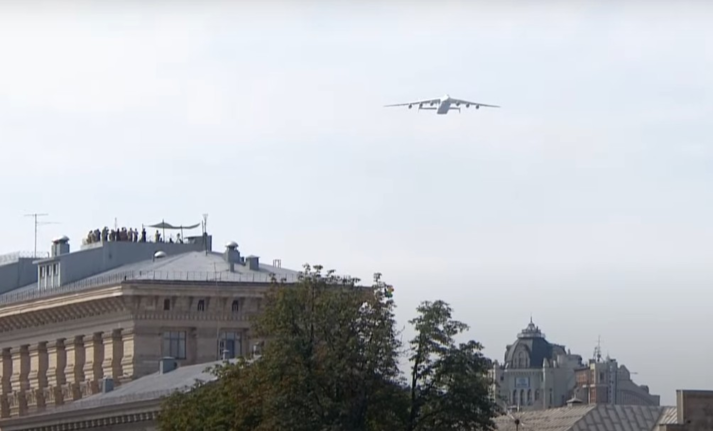 Над Крещатиком, где проходит парад, самолет Ан-225 «Мрия» прошел на высоте 400 метров