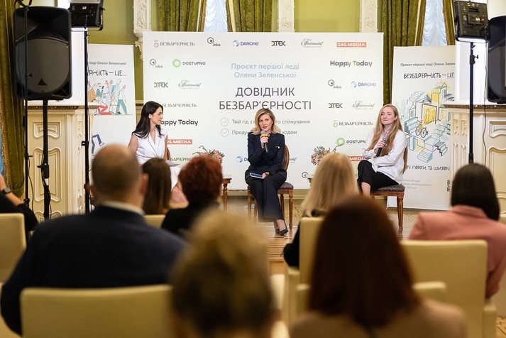 Зеленская на одном из мероприятий появилась в темном костюме с яркой рубашкой