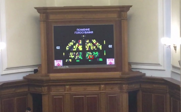 На табло голосования системы «Рада» видно, что «за» проголосовали с обоих мест.