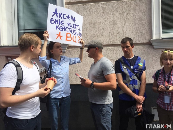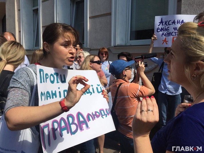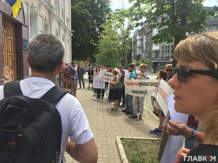 Как передает корреспондент «Главкома», причиной такого требования протестующих стало выполнение прямых профессиональных обязанностей представителя Уполномоченного, которая, руководствуясь положениями Конституции Украины и закона «Об обращении граждан», обратилась с требованием отменить на сайте президента петицию «о защите семейных ценностей и запрете пропаганды различных видов девиантного полового поведения».