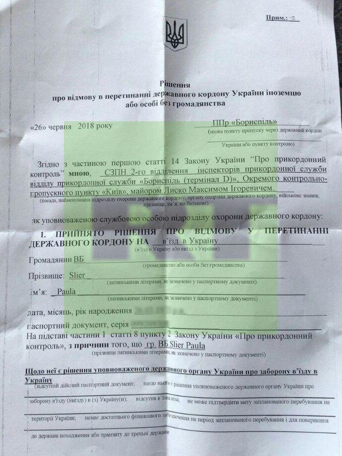 Он рассказал, что британку задержали, поскольку с 2016 года ей запрещен въезд на пять лет как опасному для Украины лицу.
