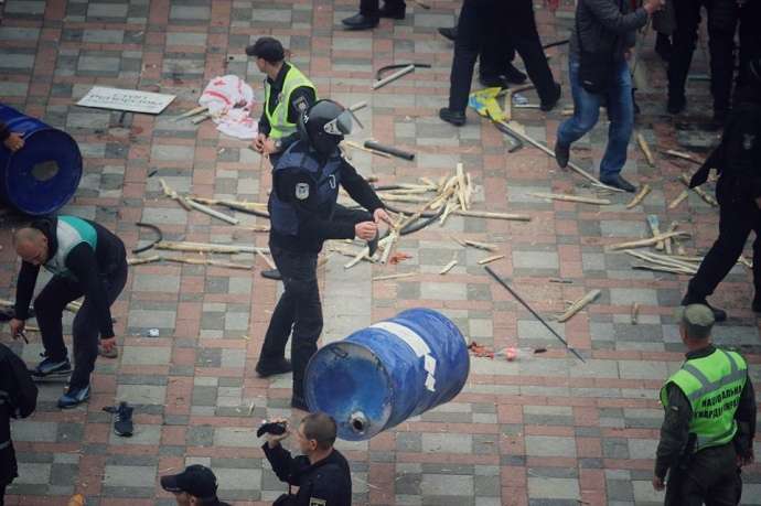 Митингующих на некоторое время вытеснили почти до начала Мариинского парка. Однако протестующие вновь вернулись на свои позиции.