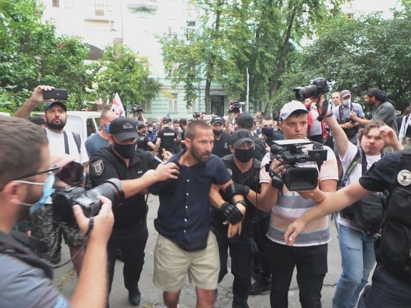Полиция задерживает участников акции солидарности под посольством Беларуси в Киеве (фото, видео)