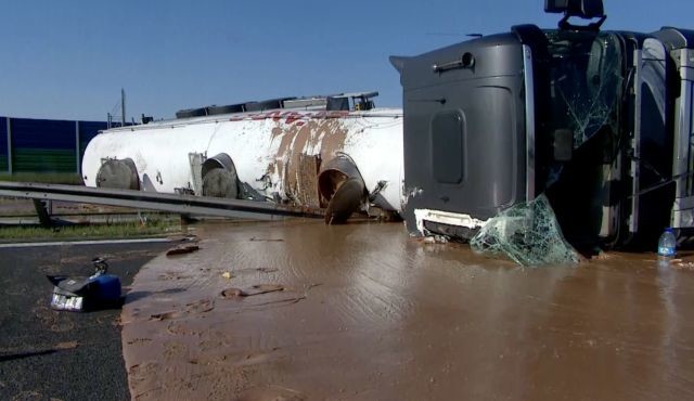В Польше на трассе перевернулась цистерна, полная жидкого шоколада. На дорогу вытекло 24 тонны жидкого шоколада. Об этом сообщает польский телеканал TVN24.