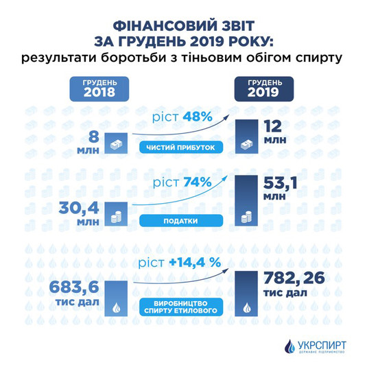Сообщается, что в финансовом плане ожидаемая прибыль ГП «Укрспирт» за 2019-й год составила - 24,3 миллиона гривен.