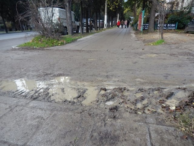 В частности, на снимках запечатлена одна из центральных улиц Ялты (ул. Московская), которая больше напоминает болото.