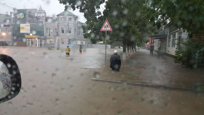 В России в результате сильных ливней затопило город Уссурийск, введен режим чрезвычайной ситуации.