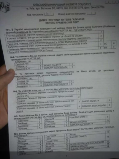 Следует добавить, что проверку СБУ начала после того, как в Facebook появились сканкопии соцопроса «Мнения и взгляды жителей Галичины: апрель-май 2019 года», который проводит Киевский международный институт социологии. В частности, среди прочего были и вопросы о том, как жители относятся к перспективам отделения трех областей Галичины в отдельное государство либо присоединения к другому государству.