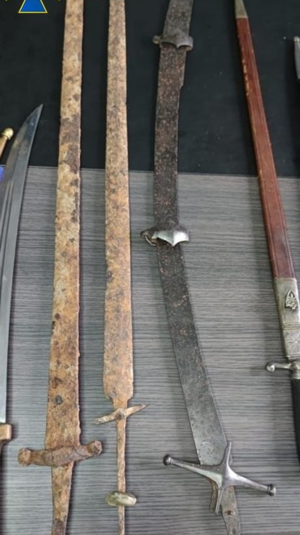 Среди прочего, правоохранители изъяли у контрабандистов более двух десятков предметов холодного оружия различных периодов (в частности античного), старинные доспехи, золотые и серебряные монеты времен Киевской Руси и 1800-1900-х годов, а также многочисленные старинные предметы быта.