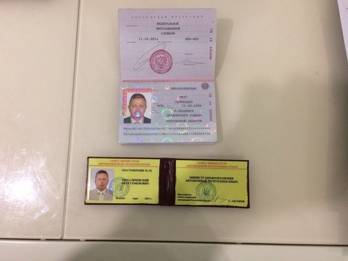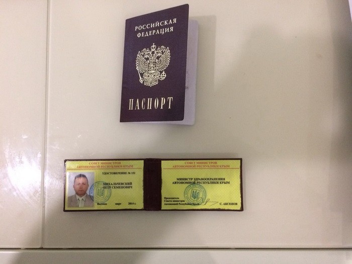 Оперативники изъяли паспорт гражданина РФ, «служебное удостоверение» с подписью «главы Крыма» Сергея Аксенова и другие документы, подтверждающие сотрудничество Михальчевского с оккупационными властями.