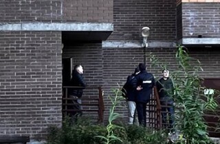 На видеокадрах видно, как женщина-полицейская и двое мужчин в штатском подстерегают мужчин, выходящих из дома, чтобы вручить повестки. Видео вроде бы сняла жительница дома.