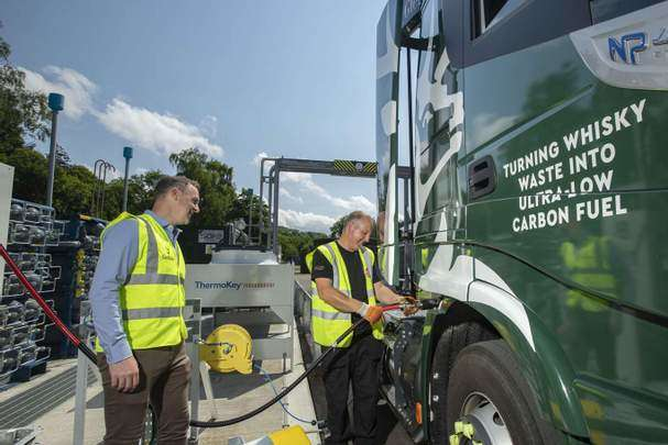 Чистый виски на выходе из дистиллятора составляет лишь 10% от общего объема сырья, остальное идет в отходы. В Шотландии десятки производителей виски, позволяет некоторым компаниям, как Celtic Renewables, скупать эти отходы и превращать их в топливо. Другие же производители превращают отходы в топливо самостоятельно, как Glenfiddich.