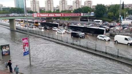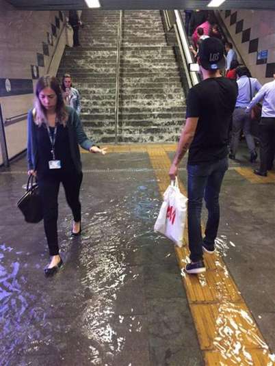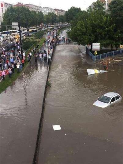 В Стамбуле в результате сильных ливней во вторник, 18 июля, затопило дороги и некоторые станции метро. Автомобильное движение и работа общественного транспорта парализована.