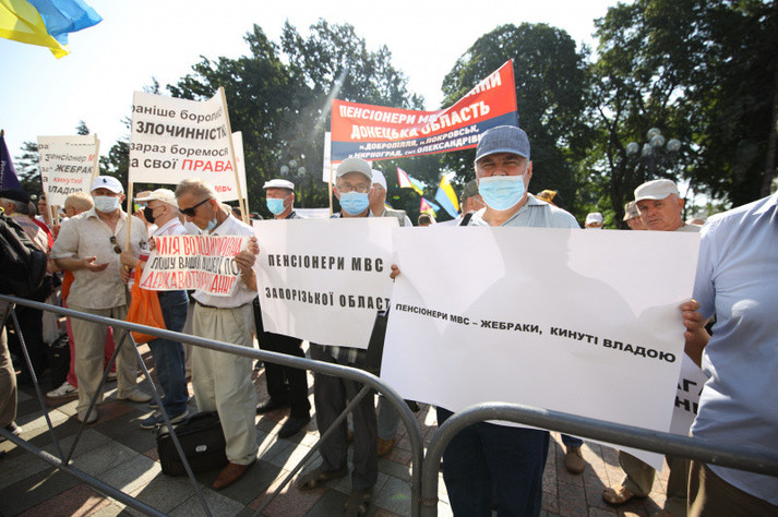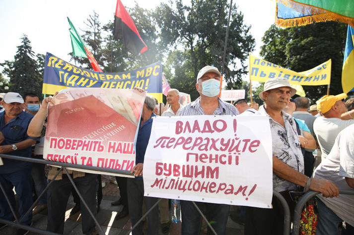 Под стенами парламента продолжается массовая акция протеста ветеранов силовых структур. Они требуют неотложного перерасчета пенсий.