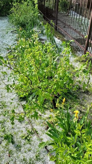 «Когда радуешься каждому цветочку, а природа градом разрушает все. Я еще такого не видела – листья и цвет с кустов и деревьев, прекрасные цветы – все на земле, все овощи, что взошли, под толщей льда», – написала она и показала фотографии, сделанные после урагана.