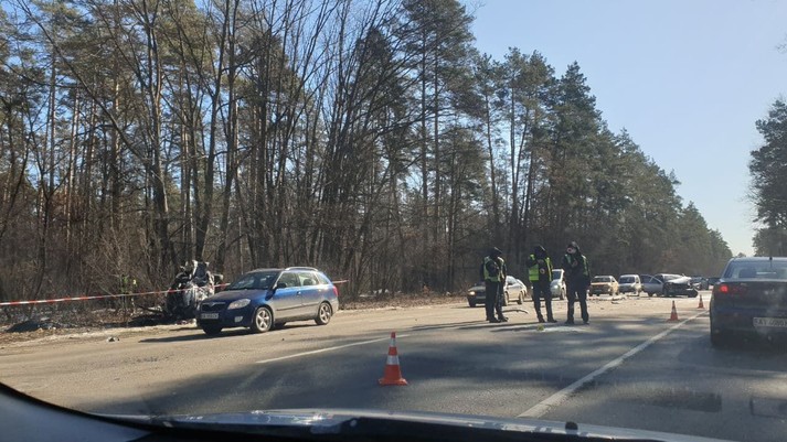 Издание dtp.kiev.ua пишет, что из-за дорожного происшествия на трассе было парализовано движение транспорта. Куски автомобилей после аварии разбросаны по всей дороге.