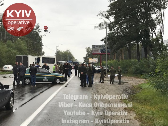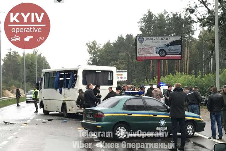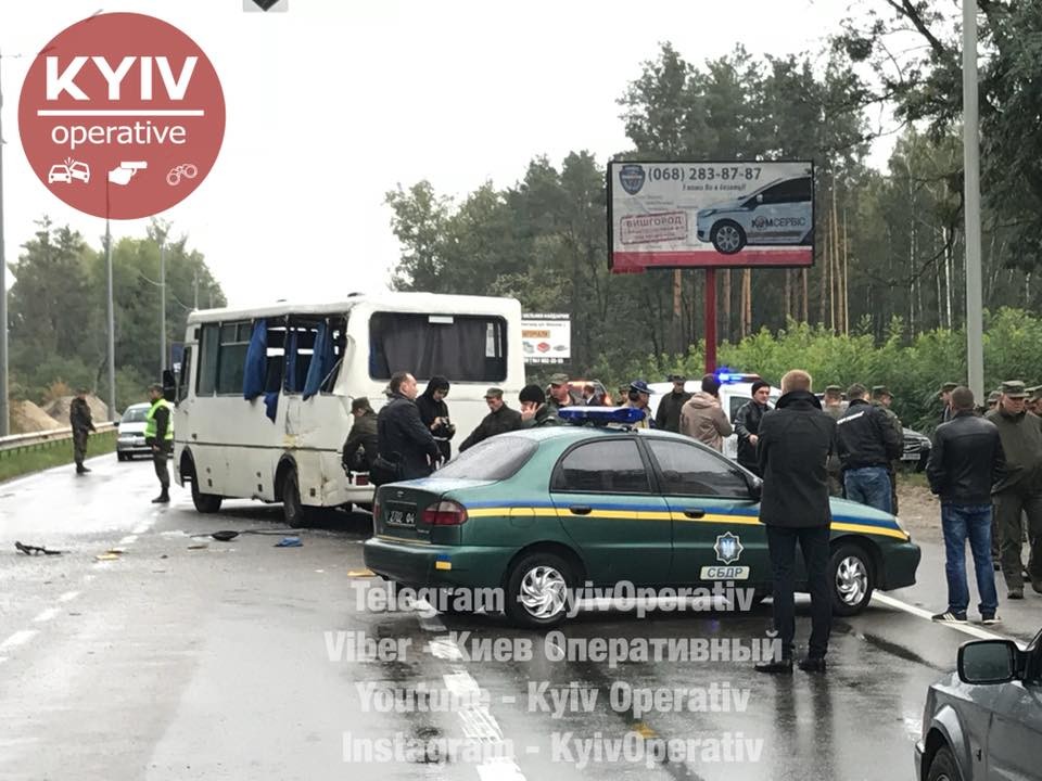 Пассажирский автобус сообщением «Дымер – Киев» столкнулся со служебным автобусом Национальной гвардии Украины, который двигался в колонне.