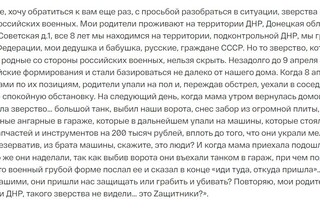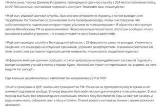 Как видно из обращений, «срочников» обманом или принуждением бросают в зону боевых действий. Российским солдатам не обеспечивают нормальное питание и медицинскую помощь, контрактники специально нарушают все нормы и правила устава, чтобы их отстранили от службы, а родители не могут получить никакой информации о своих пленных или убитых детях. Из тех же жалоб русских граждан можно узнать о мародерстве и зверствах русских солдат.