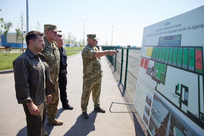 После этого Зеленский ознакомился с нововыстроенными инфраструктурными объектами военного городка Межвидового центра подготовки подразделений «Широкий лан». Военный городок построен по стандартам НАТО и рассчитан на 2500 человек. В частности, президент осмотрел казарму, спортивную площадку и столовую.