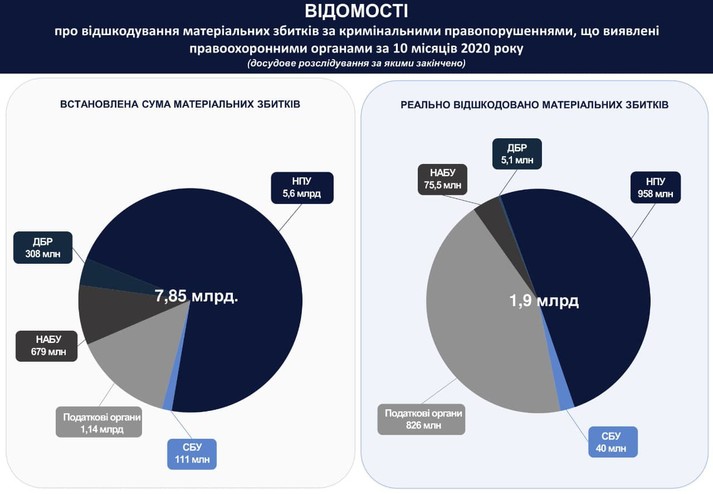 Расходы на одного сотрудника НАБУ в год составляют 1,32 миллиона гривен, общем количестве в 700 работников НАБУ. В то же время сумма реально возмещенных убытков составляет лишь 75,5 млн грн.