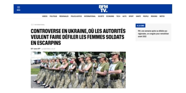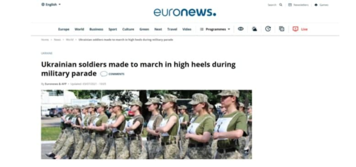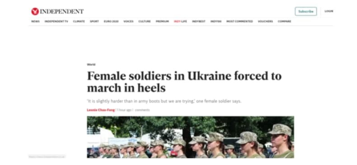 Украинская армия – на страницах мировой прессы. Однако обсуждают ведущие СМИ не ее достижения, а то, что женщин-военных заставили маршировать на каблуках. Об этом на своей странице в Facebook сообщил бывший член Нацсовета по вопросам телевидения и радиовещания Владимир Горковенко.
