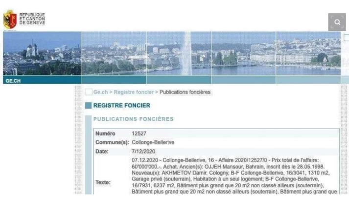 В своей статье на Kyiv Post Лещенко указывает, что согласно записям в государственной земельной книге, дом расположен по адресу Chemin de Botterel 5, 1222 Vésenaz, Швейцария. Это частная улица. Здесь Дамир Ахметов купил два дома - роскошную виллу и дом поменьше по соседству, а также участок площадью 7600 квадратных метров. Продавцом роскошного был Мансур Акрам Одже, французский бизнесмен, родившийся в Саудовской Аравии. Он является совладельцем империи TAG и команды McLaren Formula One и входит в список 100 самых влиятельных арабов мира.