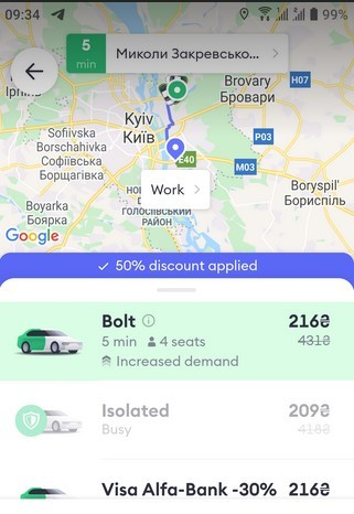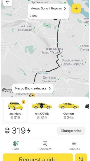 Данные сервисов для аренды такси Uklon, Bolt и Uber свидетельствуют, что цены заметно выросли из-за повышенного спроса. Например, поездка от метро Почайна до Майдана Независимости обойдется не менее чем в 200 грн, с Позняков до Контрактовой площади – дороже 400 грн, а от станции метро Васильковская до Золотых ворот – от 250 грн. Стоимость проезда от улицы Глыбочицкой до проспекта Бажана составляет 507 гривен.