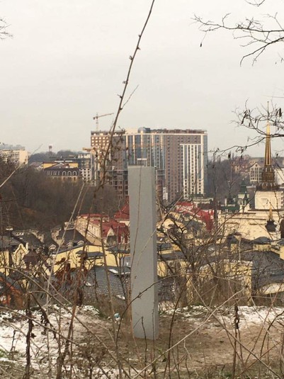 На Замковой горе в Киеве появился загадочный монолит. Фотографии объекта опубликовал в Facebook Юрий Романенко.