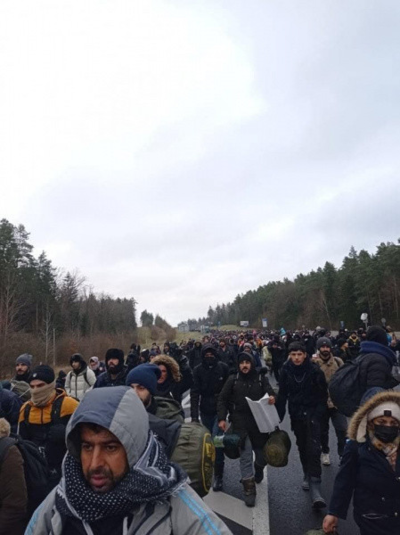 Сегодня утром в Беларуси на границу с Польшей отправилась огромная колонна мигрантов. Несколько сотен человек двигаются в пункт пропуска Брузги, сообщает белорусский портал zerkalo.io.