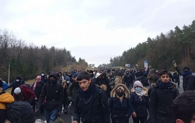 Толпа мигрантов в Беларуси движется к границе с Польшей (фото)