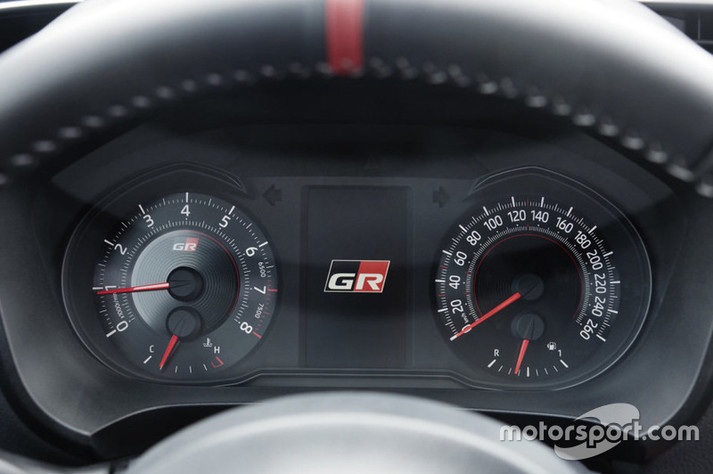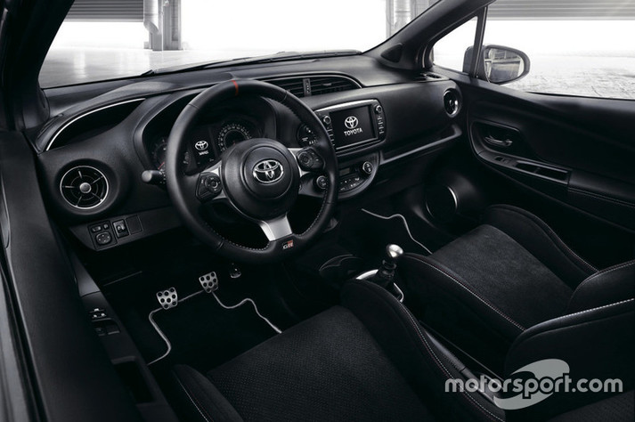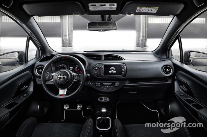 Интерьер Yaris GR Sport изменился за счет спортивных сидений, черно-белой обработки и руля от спортивного купе Toyota 86.