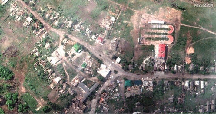 На снимках Maxar видна развернутая русская артиллерия, бронетанковые подразделения, двигающиеся с севера и востока города в направлении Лимана.