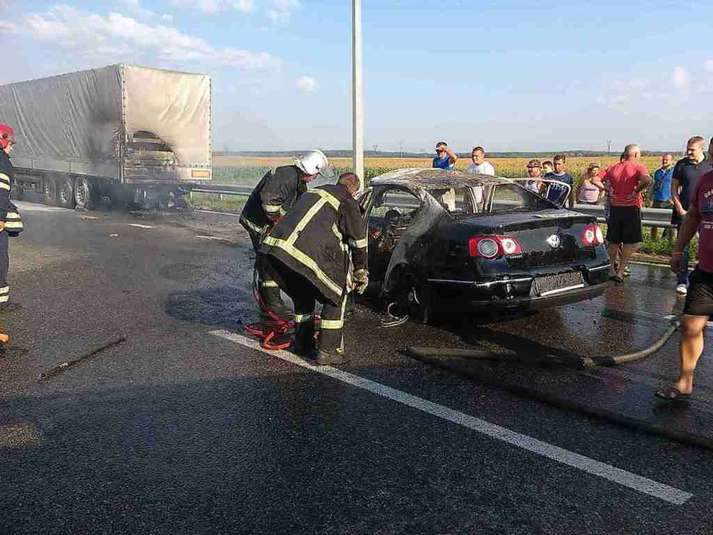 По словам очевидцев, водитель Volkswagen пытался совершить обгон грузового автомобиля. В результате Volkswagen заехал под грузовик и загорелся. Водитель погиб.