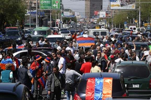 Демонстранты перекрывали улицы Еревана, протестуя против избрания Саргсяна премьером, который с 2008 по 2018 годы занимал должность президента Армении.
