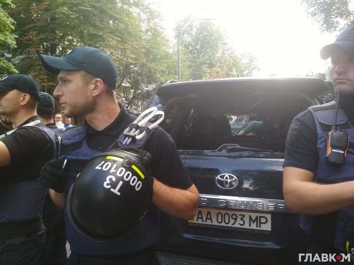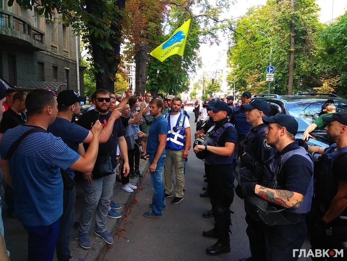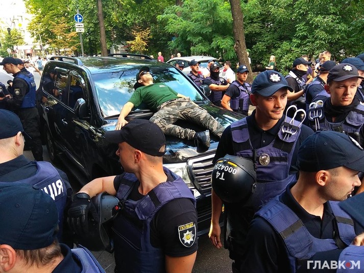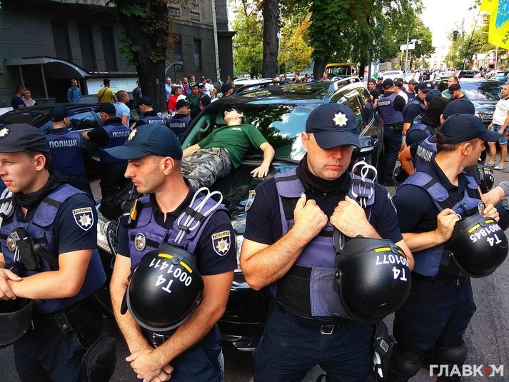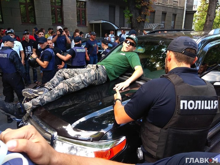 «Евробляхеры» требуют провести «общественное задержание» нардепа. «Слуга народа, выйди к народу», - скандируют они. Также выкрикивают: «полиция с народом»