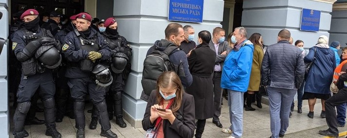 Избранники трех фракций Черновицкого горсовета – «Народный контроль», «Родной город» и «Команда Михайлишина» заблокировали трибуну в сессионном зале, а у некоторых депутатов пытались забрать карточки, которые дают им возможность голосовать.