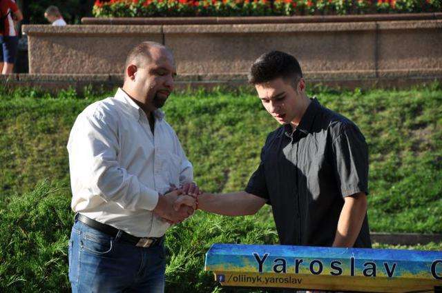Ярослав выступал в парке имени Тараса Шевченко, возле памятника. «Это то самое место, где я часто играл, а отец стоял напротив и слушал меня», - пояснил музыкант.