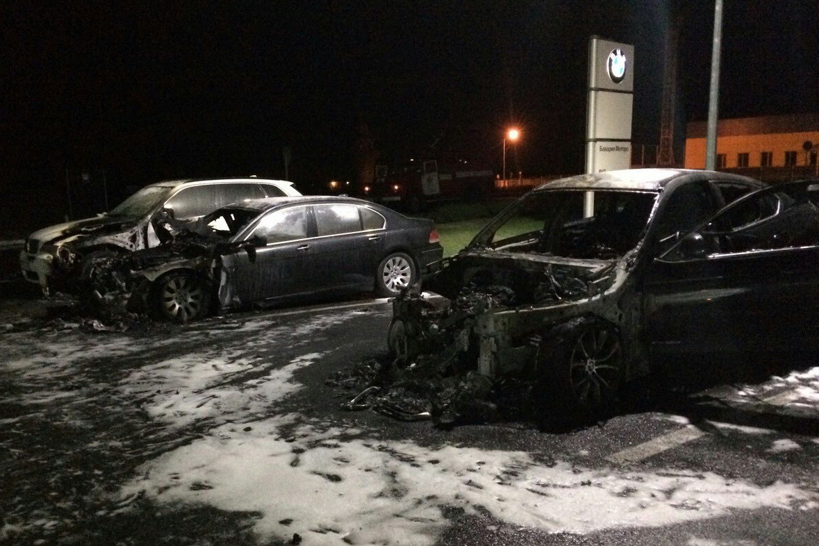 В Харькове неизвестные совершили поджог на стоянке автосалона, в результате чего сгорели четыре автомобиля BMW.
